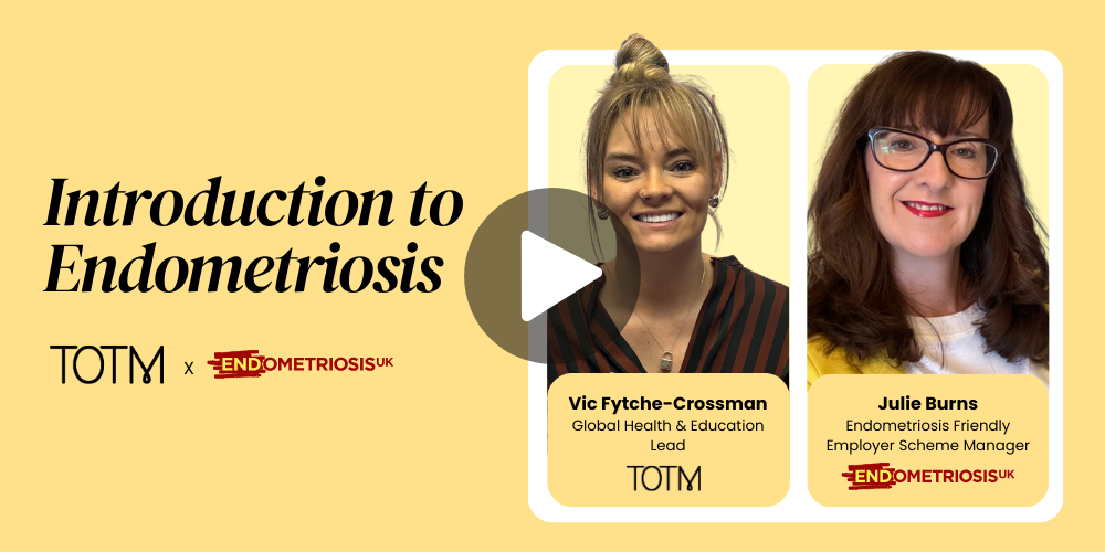 We hosted a live talk all about Endometriosis with Vic Fytche (Global Health and Education Lead from TOTM) and Julie Burns (Endometriosis Friendly Employer Manager from Endometriosis UK). If you’d like to revisit the session or share it with colleagues, you can click here to access the recording.